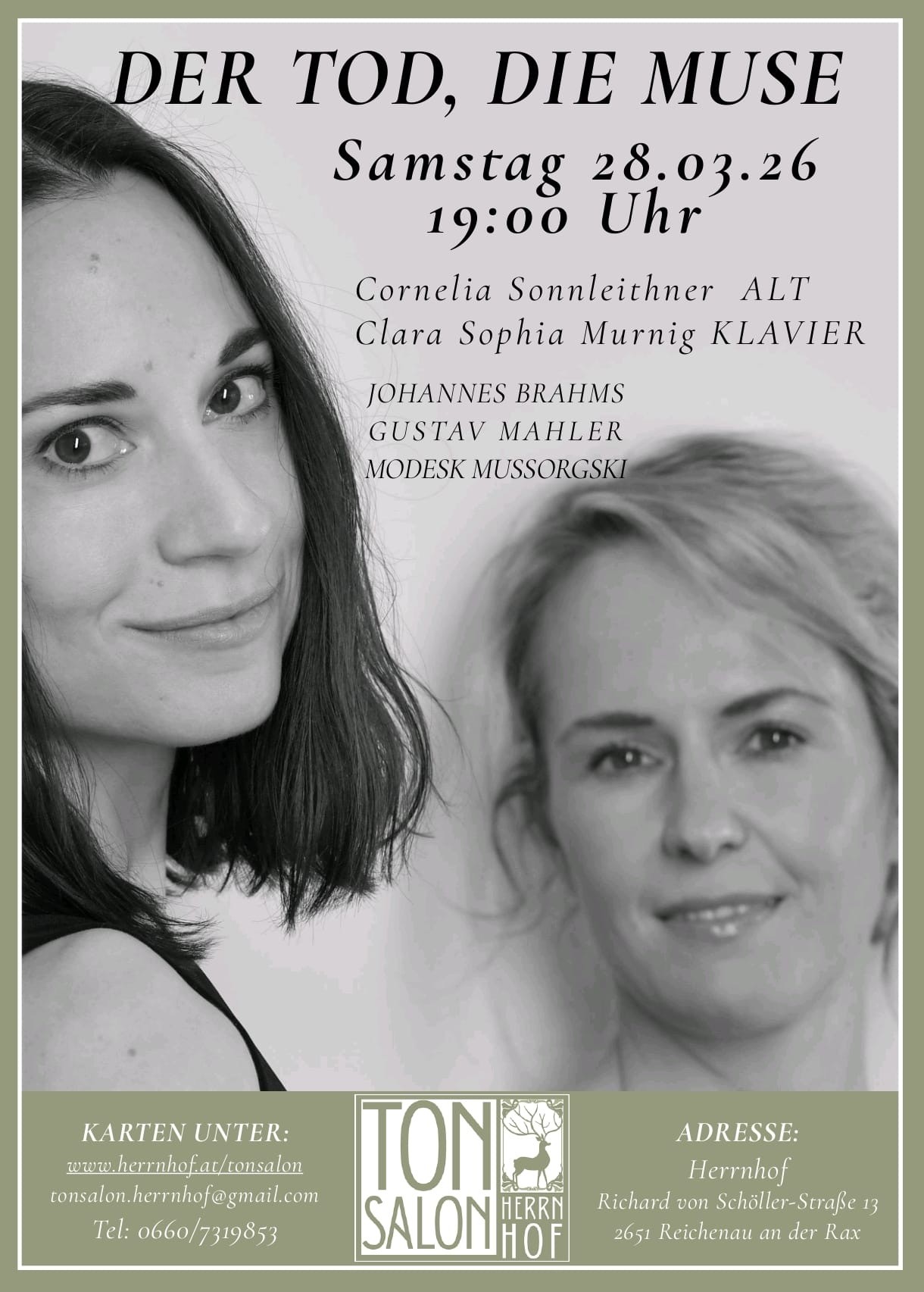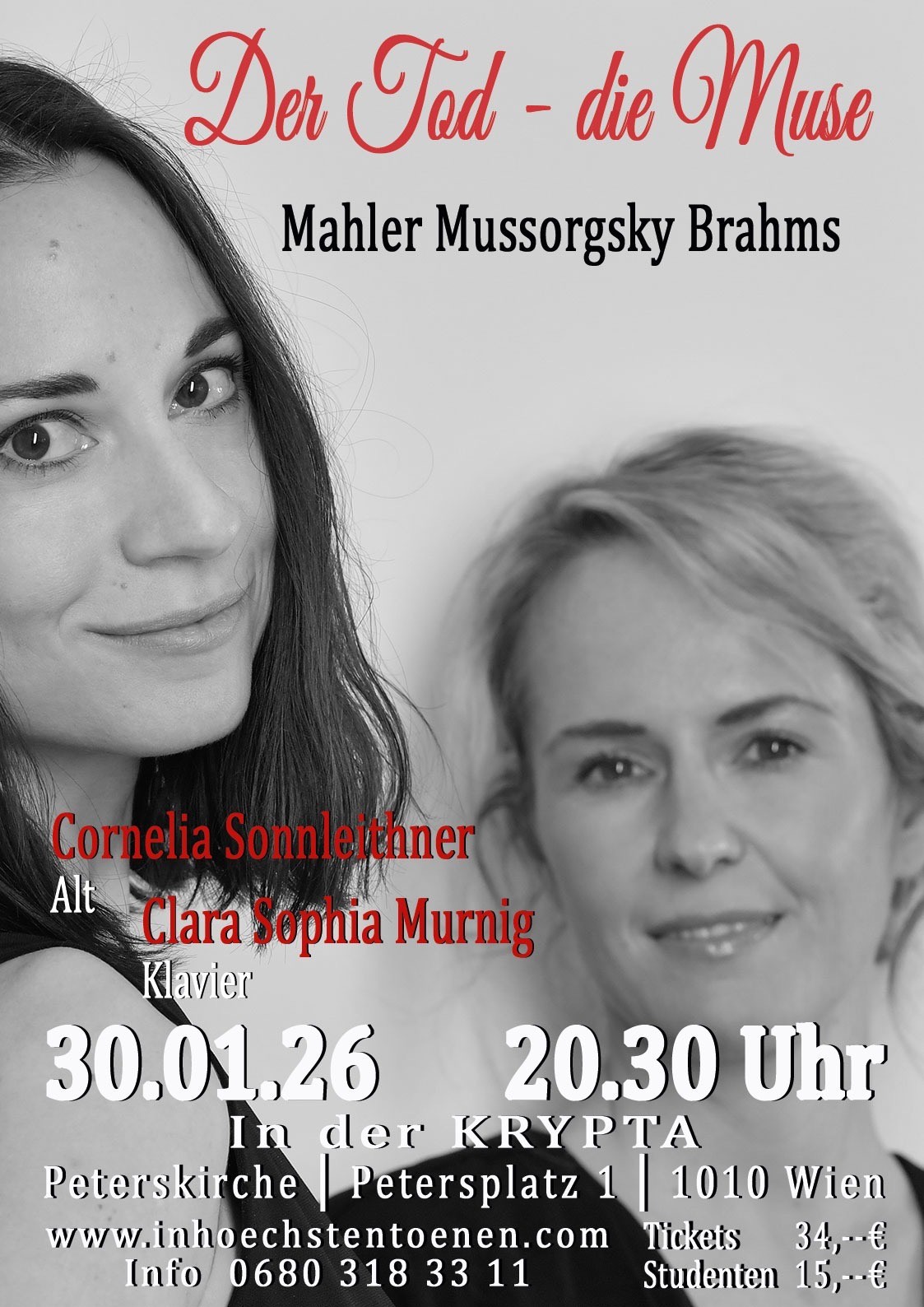 Mit der Liedpianistin Clara Sophia Murnig bildet Cornelia Sonnleithner seit einigen Jahren ein Lied-Duo. Im Herbst 2026 erscheint ihr erstes gemeinsames Album "Der Tod, die Muse" auf CD!